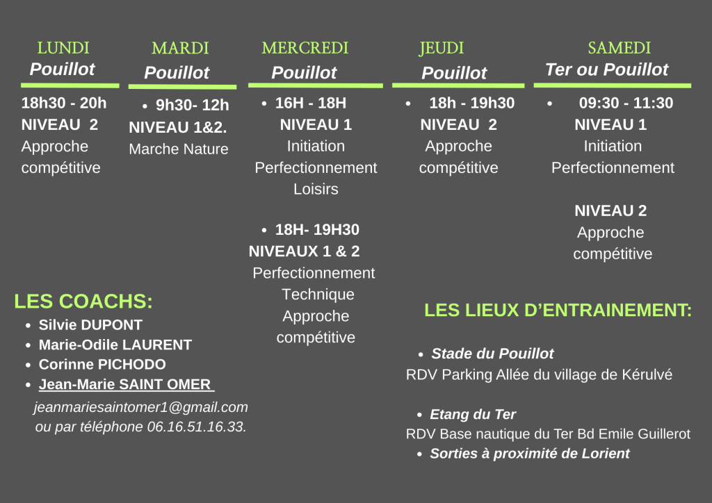 04 coachs diplômés à votre disposition – Niveaux loisir et compétition sur les sites du Pouillot ou du Ter. Convivialité assurée !