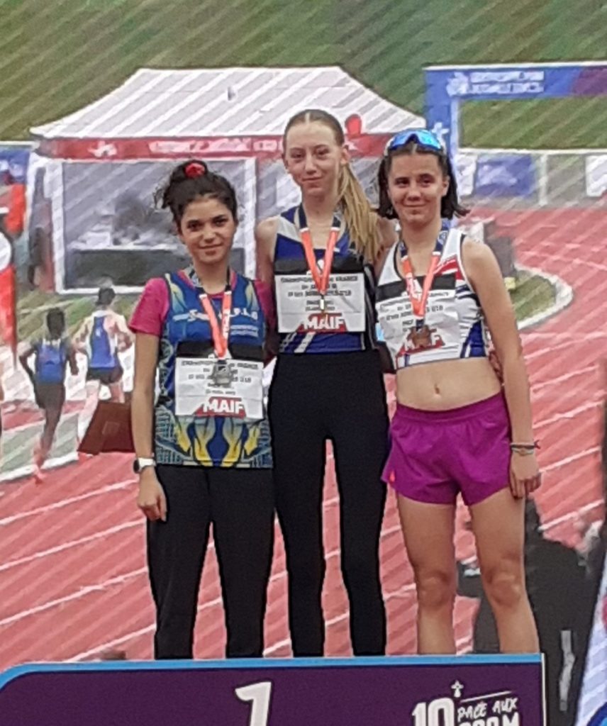 Très beau résultat pour notre représentante Anaëlle POUSSIER (à gauche). Néophyte sur la distance, Anaëlle parcourt la distance de 7485m en 30mn et se classe seconde de la compétition cadettes.
