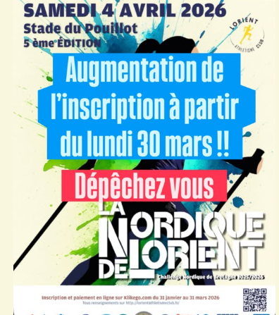 Il est encore temps de vous inscrire sur klikego sur le lien ci-après : https://www.klikego.com/inscription/la-nordique-de-lorient-2026/running-marche-nordique/1640316002281-5